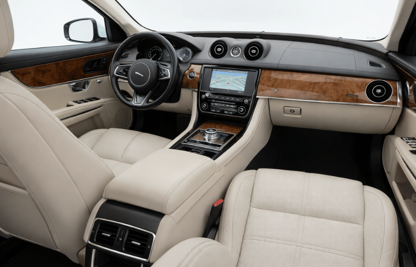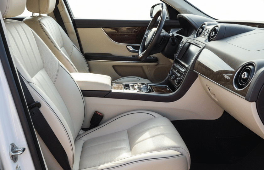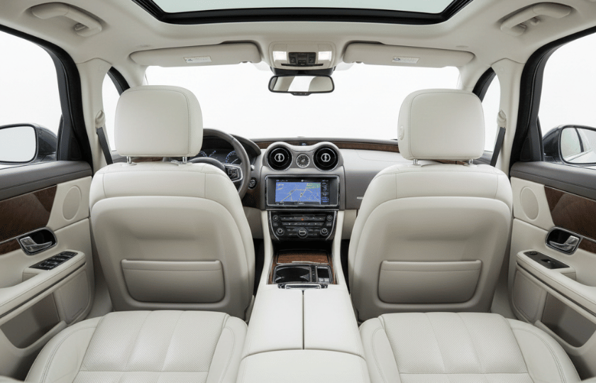 Jaguar XJL offers extended legroom, premium leather interiors, and a quiet cabin for relaxed executive travel.