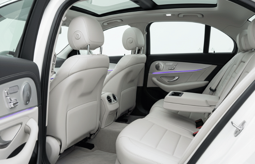 Mercedes-Benz E-Class provides wide rear seating, refined interiors, and a quiet cabin for relaxed travel.