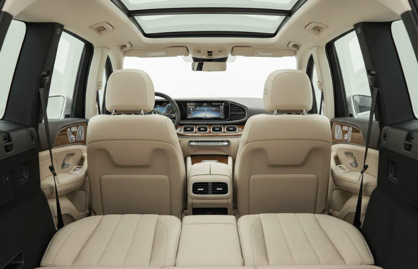 Mercedes GLS provides wide seating, smooth suspension, and a well-designed interior for relaxed travel.